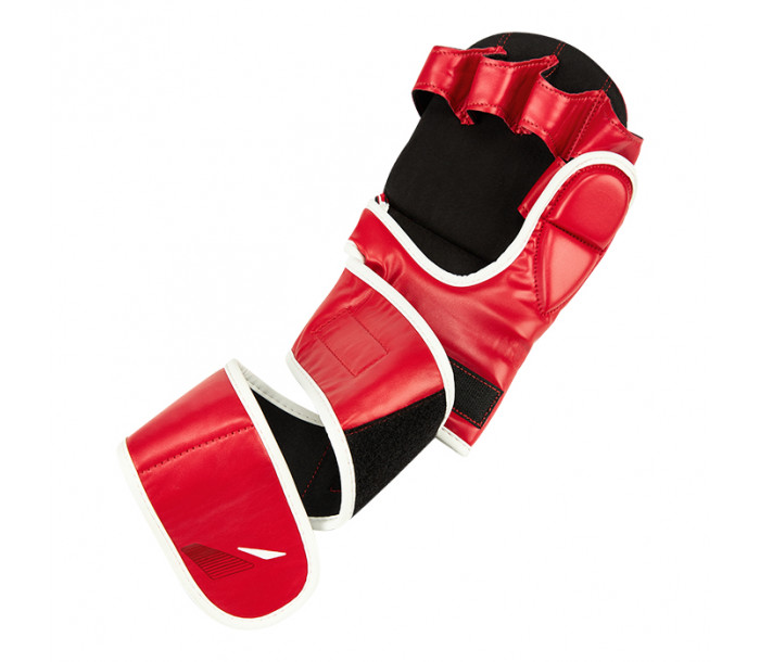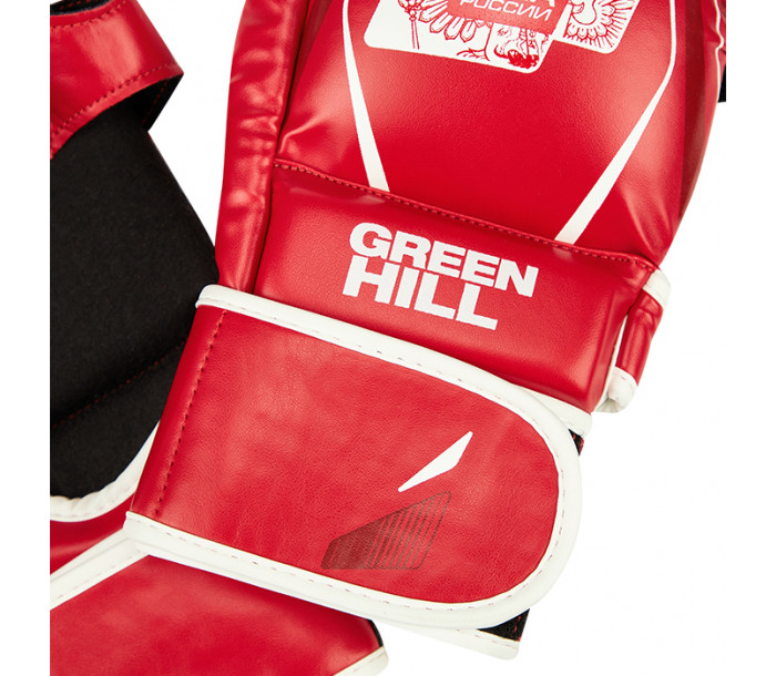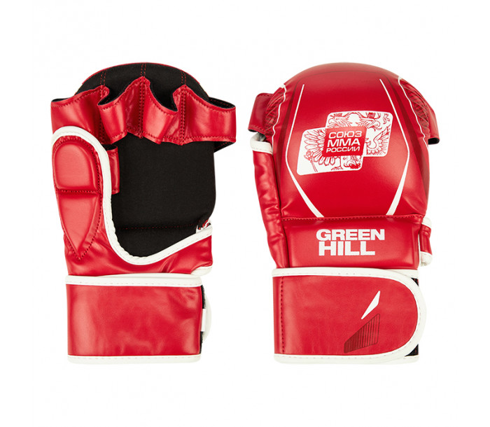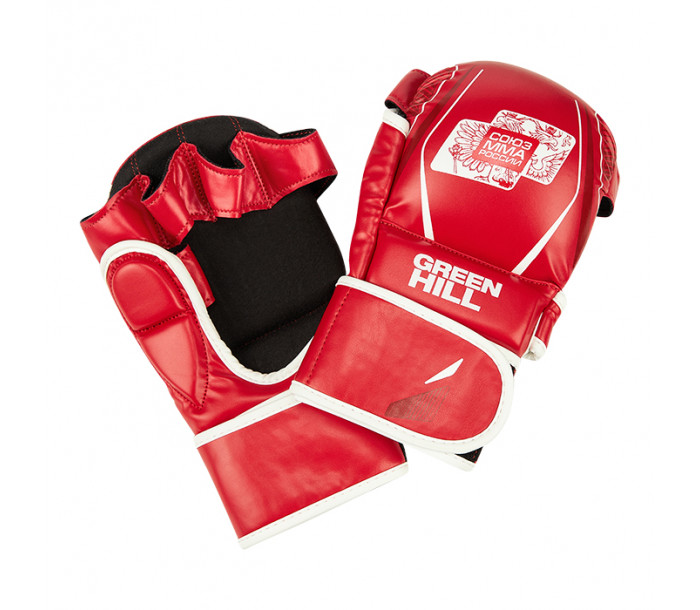 Перчатки ММА для российских турниров по ММА. Обладают толстым наполнителем ударной части для обеспечения безопасности спортсменов и максимально открытой ладонью для облегчения борьбы. Большой палец закрыт и защищен двухсекционным наполнителем из пены. Материал перчаток - искусственная кожа. Крепление на липучке в два оборота.