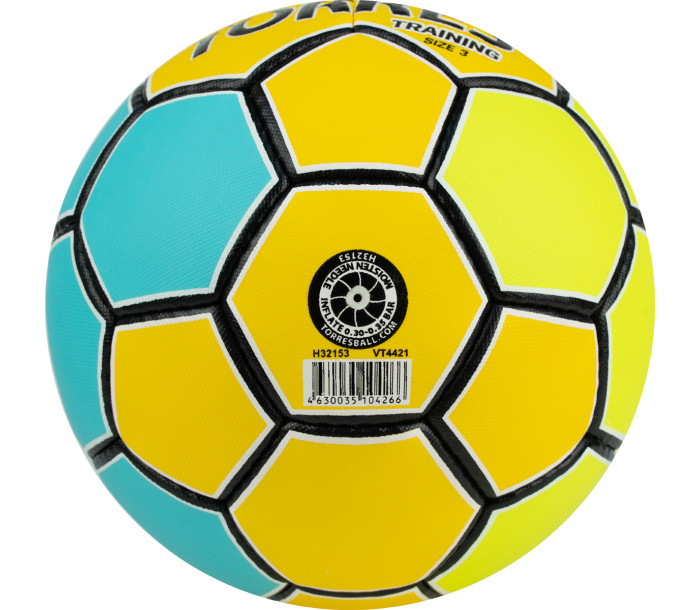TORRES Training - тренировочный мяч для команд и клубов среднего и любительского уровней, также подходит для проведения соревнований местного значения. Покрышка из синтетической кожи (полиуретан) толщиной 1,2 мм на нетканой основе и 4 подкладочных слоя (1 слой хлопка, 2 слоя вискозы, 1 слой вспененной резины). Слой вспененной резины придает мячу исключительную мягкость, что вкупе с нескользящей кожей обеспечивает плотный контакт рук и мяча, позволяя надежно фиксировать мяч. Структура используемой синтетической кожи допускает использование мастики. Латексная камера с двойным бутиловым ниппелем. Ручная сшивка, 32 панели.